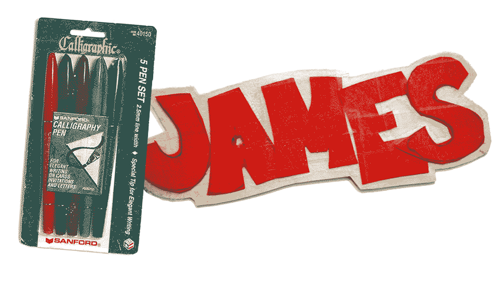 The first was very literal. I got a set of calligraphy pens when I was about fourteen that came with an instruction book on them. That book taught me how ink flowed out of a broad edged pen. Once I saw the magic of that, I was hooked and became really interested in contrast and just being able to replicate the forms. I’d doodle serif letterforms and that sort of thing.